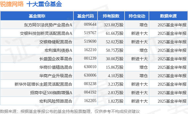 重仓锐捷网络的前十大公募基金请见下表: