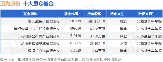 重仓迈为股份的公募基金请见下表: