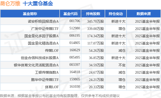 根据2025基金半年报公募基金重仓股数据,重仓该股的公募基金共18家,其中持有数量最多的公募基金为诺安基金的诺安积极回报混合A。诺安积极回报混合A目前规模为14.87亿元,最新净值2.173(8月21日),较上一交易日下跌0.5%,近一年上涨33.31%。该公募基金现任基金经理为刘慧影。刘慧影在任的基金产品包括:诺安优化配置混合A,管理时间为2022年8月3日至今,期间收益率为40.36%;诺安成长混合,管理时间为2023年2月18日至今,期间收益率为18.61%;