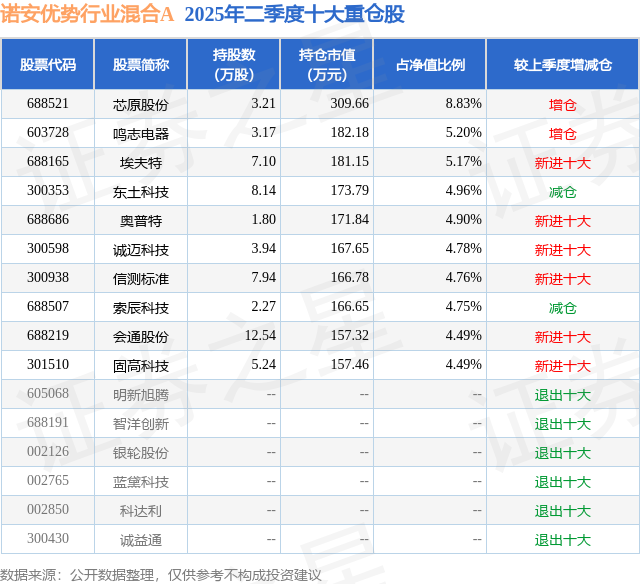 诺安优势行业混合A的前十大重仓股如下: