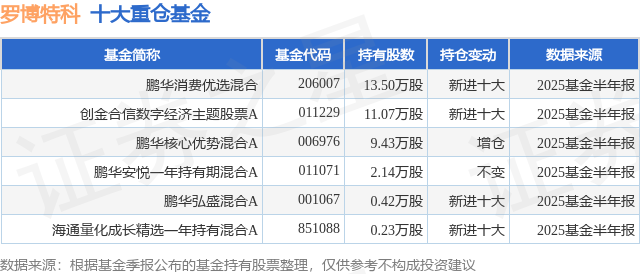 根据2025基金半年报公募基金重仓股数据,重仓该股的公募基金共6家,其中持有数量最多的公募基金为鹏华基金的鹏华消费优选混合。鹏华消费优选混合目前规模为4.6亿元,最新净值3.381(8月22日),较上一交易日下跌0.29%,近一年上涨35.02%。该公募基金现任基金经理为黄奕松。黄奕松在任的基金产品包括:鹏华核心优势混合A,管理时间为2021年12月18日至今,期间收益率为10.73%;