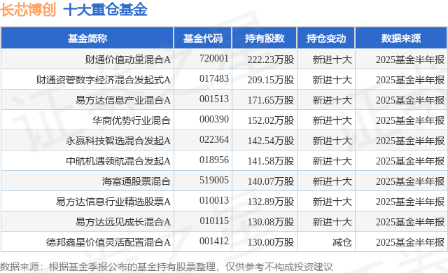 根据2025基金半年报公募基金重仓股数据,重仓该股的公募基金共83家,其中持有数量最多的公募基金为财通基金的财通价值动量混合A。财通价值动量混合A目前规模为19.87亿元,最新净值5.715(8月22日),较上一交易日上涨4.04%,近一年上涨76.28%。该公募基金现任基金经理为金梓才。金梓才在任的基金产品包括:财通成长优选混合A,管理时间为2015年6月29日至今,期间收益率为177.9%;财通多策略福鑫定开混合,管理时间为2018年5月21日至今,期间收益率为229.56%;财通集成电路产业股票A,管理时间为2018年11月29日至今,期间收益率为183.47%。