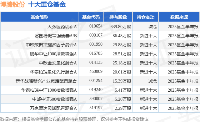 重仓博腾股份的前十大公募基金请见下表: