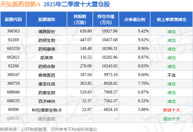 根据2025基金半年报公募基金重仓股数据,重仓该股的公募基金共12家,其中持有数量最多的公募基金为天弘基金的天弘医药创新A。天弘医药创新A目前规模为7.07亿元,最新净值1.0923(8月22日),较上一交易日上涨1.12%,近一年上涨72.5%。该公募基金现任基金经理为郭相博。郭相博在任的基金产品包括:天弘臻选健康混合A,管理时间为2022年3月17日至今,期间收益率为25.22%。