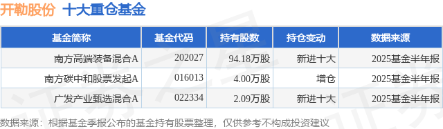 根据2025基金半年报公募基金重仓股数据,重仓该股的公募基金共3家,其中持有数量最多的公募基金为南方基金的南方高端装备混合A。南方高端装备混合A目前规模为5.73亿元,最新净值2.8558(8月25日),较上一交易日上涨2.32%,近一年上涨74.01%。该公募基金现任基金经理为张磊。张磊在任的基金产品包括:南方碳中和股票发起A,管理时间为2022年10月25日至今,期间收益率为8.2%;南方新材料股票发起A,管理时间为2023年3月21日至今,期间收益率为2.9%。