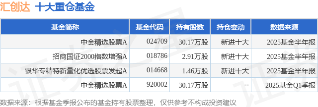 重仓汇创达的公募基金请见下表: