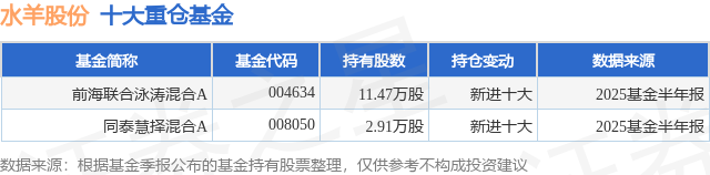重仓水羊股份的公募基金请见下表:
