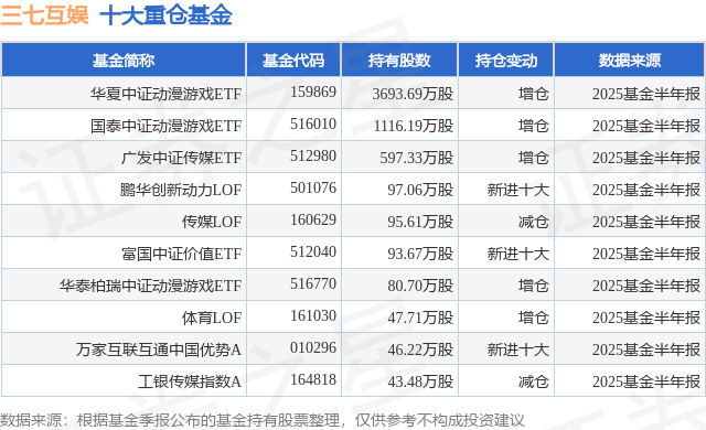 根据2025基金半年报公募基金重仓股数据,重仓该股的公募基金共30家,其中持有数量最多的公募基金为华夏基金的华夏中证动漫游戏ETF。华夏中证动漫游戏ETF目前规模为70.73亿元,最新净值1.4681(8月25日),较上一交易日上涨1.13%,近一年上涨103.51%。该公募基金现任基金经理为鲁亚运。鲁亚运在任的基金产品包括:华夏创业板成长ETF联接A,管理时间为2022年6月10日至今,期间收益率为-9.2%;华夏中证全指证券公司ETF联接A,管理时间为2022年6月10日至今,期间收益率为43.04%;华夏国证疫苗与生物科技指数发起A,管理时间为2022年9月6日至今,期间收益率为-26.89%;华夏战略新兴成指ETF联接A,管理时间为2023年3月27日至今,期间收益率为12.46%。