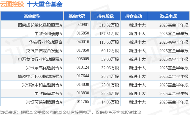 重仓云图控股的前十大公募基金请见下表: