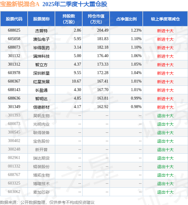 宝盈新锐混合A的前十大重仓股如下:
