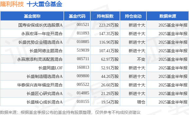 重仓隆利科技的前十大公募基金请见下表: