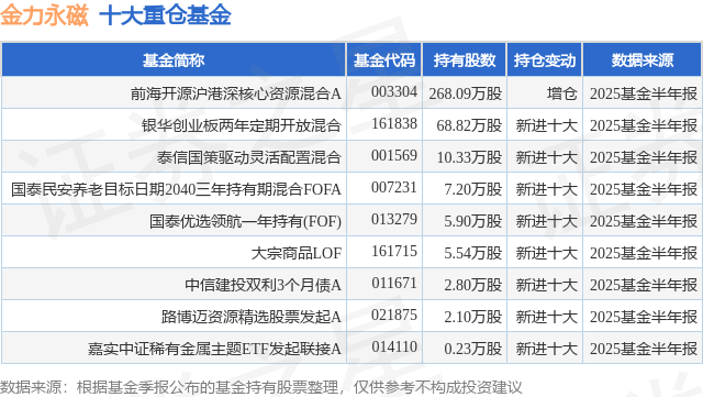 重仓金力永磁的公募基金请见下表: