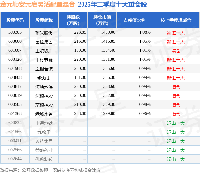 金元顺安元启灵活配置混合的前十大重仓股如下: