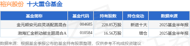 重仓裕兴股份的公募基金请见下表: