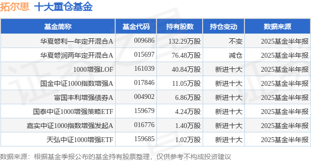 根据2025基金半年报公募基金重仓股数据,重仓该股的公募基金共8家,其中持有数量最多的公募基金为华夏基金的华夏磐利一年定开混合A。华夏磐利一年定开混合A目前规模为3.34亿元,最新净值1.9206(8月26日),较上一交易日下跌0.23%,近一年上涨88.39%。该公募基金现任基金经理为张城源。张城源在任的基金产品包括:华夏磐泰混合(LOF)A,管理时间为2016年12月26日至今,期间收益率为78.96%;华夏磐锐一年定开混合A,管理时间为2020年12月22日至今,期间收益率为68.13%;华夏磐益一年定开混合,管理时间为2021年1月26日至今,期间收益率为44.11%。
