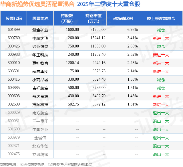 华商新趋势优选灵活配置混合的前十大重仓股如下: