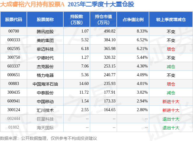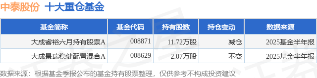 根据2025基金半年报公募基金重仓股数据,重仓该股的公募基金共2家,其中持有数量最多的公募基金为大成基金的大成睿裕六月持有股票A。大成睿裕六月持有股票A目前规模为0.5亿元,最新净值1.5672(8月27日),较上一交易日下跌1.52%,近一年上涨26.21%。该公募基金现任基金经理为朱倩。朱倩在任的基金产品包括:大成北交所两年定开混合A,管理时间为2023年6月28日至今,期间收益率为94.14%;大成景瑞稳健配置混合A,管理时间为2024年8月5日至今,期间收益率为1.87%。