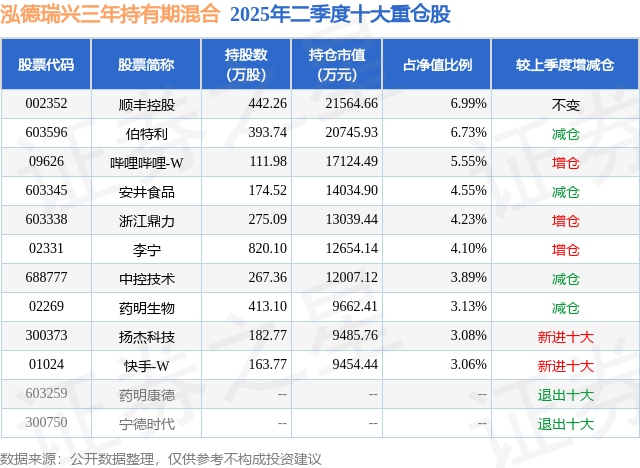 根据2025基金半年报公募基金重仓股数据,重仓该股的公募基金共37家,其中持有数量最多的公募基金为泓德基金的泓德瑞兴三年持有期混合。泓德瑞兴三年持有期混合目前规模为30.85亿元,最新净值1.1351(8月27日),较上一交易日下跌1.39%,近一年上涨52.55%。该公募基金现任基金经理为王克玉。王克玉在任的基金产品包括:泓德优选成长混合,管理时间为2015年10月9日至今,期间收益率为160.11%;泓德优势领航混合,管理时间为2016年12月21日至今,期间收益率为108.47%;泓德研究优选混合,管理时间为2019年5月27日至今,期间收益率为102.45%;