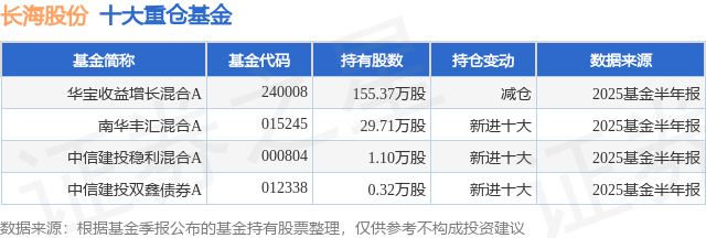 重仓长海股份的公募基金请见下表: