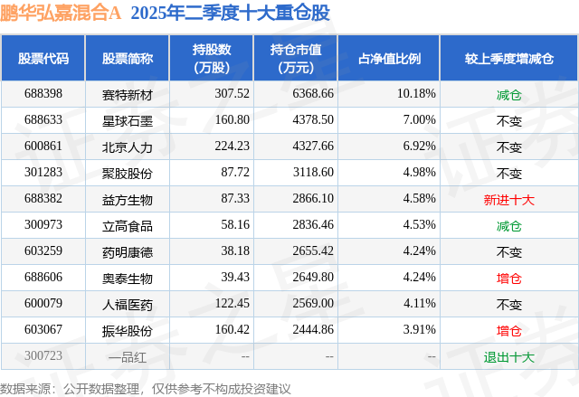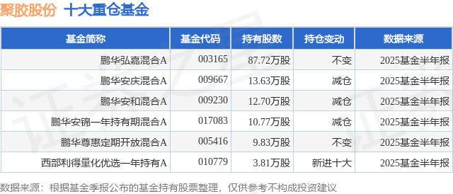 根据2025基金半年报公募基金重仓股数据,重仓该股的公募基金共6家,其中持有数量最多的公募基金为鹏华基金的鹏华弘嘉混合A。鹏华弘嘉混合A目前规模为4.52亿元,最新净值2.9147(8月28日),较上一交易日上涨0.47%,近一年上涨79.96%。该公募基金现任基金经理为汤志彦。汤志彦在任的基金产品包括:鹏华尊惠定期开放混合A,管理时间为2018年10月27日至今,期间收益率为110.55%;鹏华安和混合A,管理时间为2020年6月17日至今,期间收益率为41.22%;鹏华安庆混合A,管理时间为2020年6月23日至今,期间收益率为42.63%。