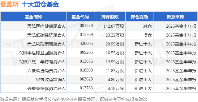 重仓普蕊斯的公募基金请见下表: