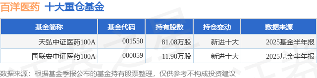 重仓百洋医药的公募基金请见下表: