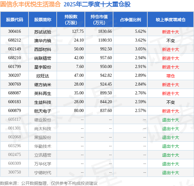 圆信永丰优悦生活混合的前十大重仓股如下: