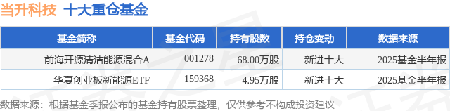 根据2025基金半年报公募基金重仓股数据,重仓该股的公募基金共2家,其中持有数量最多的公募基金为前海开源基金的前海开源清洁能源混合A。前海开源清洁能源混合A目前规模为4.44亿元,最新净值1.561(8月28日),较上一交易日上涨0.97%,近一年上涨42.82%。该公募基金现任基金经理为杨德龙。杨德龙在任的基金产品包括:前海开源深圳特区精选股票A,管理时间为2021年5月7日至今,期间收益率为6.1%;前海开源优质龙头6个月持有混合A,管理时间为2021年7月9日至今,期间收益率为-22.01%;前海开源沪港深龙头精选混合A,管理时间为2021年11月18日至今,期间收益率为-15.78%。