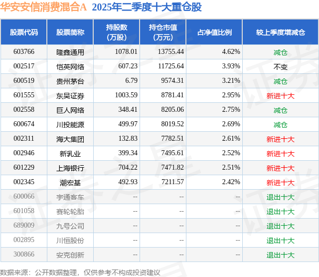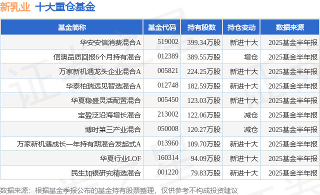 根据2025基金半年报公募基金重仓股数据,重仓该股的公募基金共34家,其中持有数量最多的公募基金为华安基金的华安安信消费混合A。华安安信消费混合A目前规模为28.23亿元,最新净值5.272(8月28日),较上一交易日上涨2.21%,近一年上涨25.46%。该公募基金现任基金经理为王斌。王斌在任的基金产品包括:华安精致生活混合A,管理时间为2021年3月9日至今,期间收益率为47.56%;华安聚嘉精选混合A,管理时间为2021年3月19日至今,期间收益率为65.26%;华安汇嘉精选混合A,管理时间为2022年1月26日至今,期间收益率为16.37%。