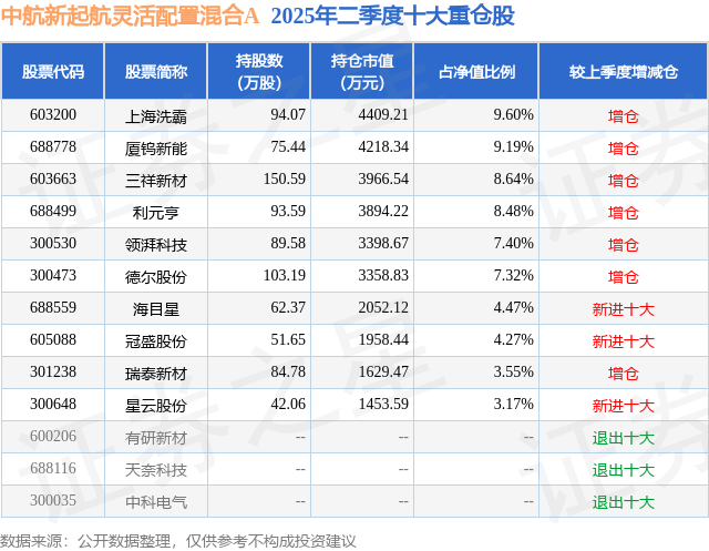 中航新起航灵活配置混合A的前十大重仓股如下: