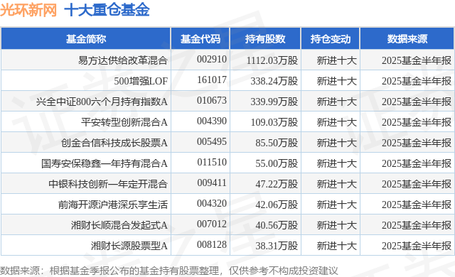 重仓光环新网的前十大公募基金请见下表: