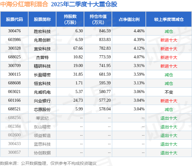 根据2025基金半年报公募基金重仓股数据,重仓该股的公募基金共3家,其中持有数量最多的公募基金为中海基金的中海分红增利混合。中海分红增利混合目前规模为1.9亿元,最新净值0.8047(9月1日),较上一交易日上涨2.15%,近一年上涨55.8%。该公募基金现任基金经理为邱红丽。邱红丽在任的基金产品包括:中海积极收益混合,管理时间为2021年7月30日至今,期间收益率为-1.33%;中海顺鑫灵活配置混合,管理时间为2021年7月30日至今,期间收益率为-51.23%。